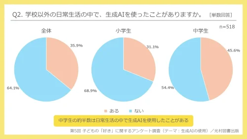 生成AI、小中生の74.5%が「学校の授業で使ったことがない」=光村図書出版調べ=