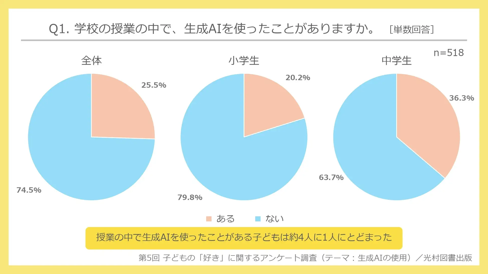 生成AI、小中生の74.5%が「学校の授業で使ったことがない」=光村図書出版調べ=