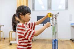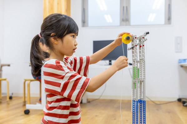 カリキュラムは、ブロック制作16レッスンとタブレット学習8レッスンの計24レッスン。ブロックカリキュラムでは「風力カー」や「ビー玉ジャンプ」などの制作を通じて、力の伝達やエネルギーの働きといった物理概念を体験的に学ぶ。タブレットカリキュラムではScratchJrやViscuitを活用し、ゲーム制作などのテーマを通じてプログラミング的思考を育成する。