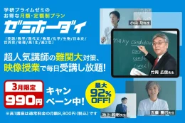 学研ホールディングスのグループ会社Gakkenは、同社が運営する映像授業の難関大受験対策講座「学研プライムゼミ」で、3月31日まで、「ゼミホーダイ 初回990円キャンペーン」を行なっている。