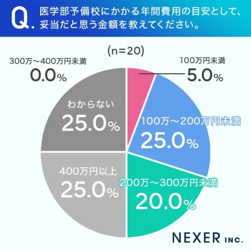 医学部予備校の費用、4人に1人が「400万円以上」を想定 =NEXER調べ=