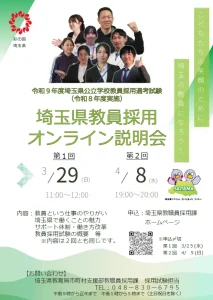 3. 埼玉県公立学校教員採用選考試験(令和8年度実施)の要項と採用案内を公開・OL説明会開催