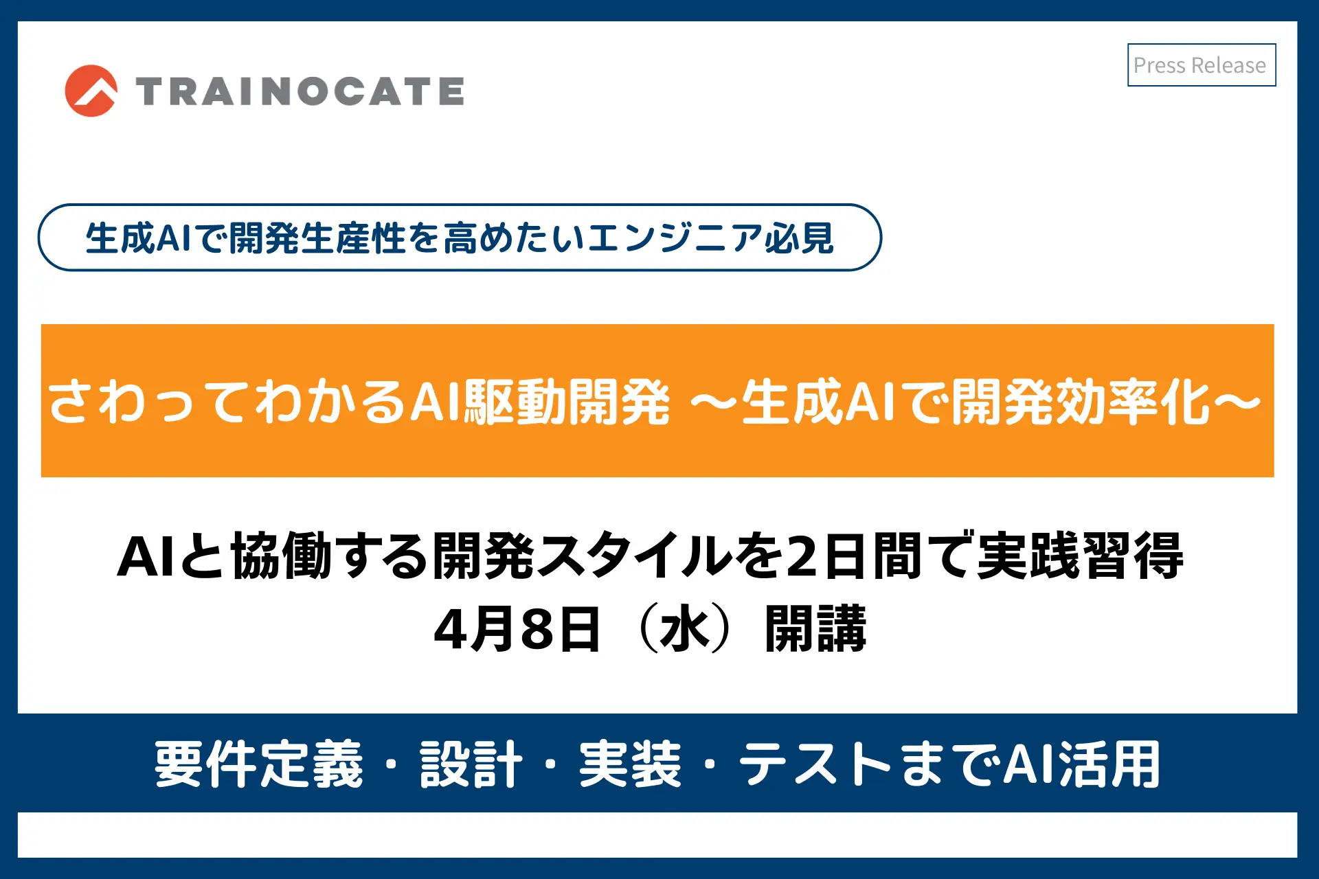 トレノケート、新研修「さわってわかるAI駆動開発 ~生成AIで開発効率化~」提供開始