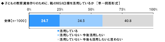 「こどもNISA」の教育資金作りへの活用意向については、親のNISA口座を子どもの教育資金に活用中の人の8割半が活用を希望している。