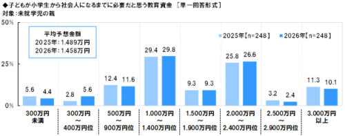 ソニー生命保険は25日、ネットエイジアの調査協力のもと実施した、「子どもの教育資金に関する調査2026」の結果を公開した。