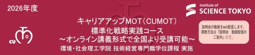 東京科学大学(Science Tokyo)は3月30日、MOT(技術経営)に関する社会人向けプログラムとして、キャリアアップMOT「標準化戦略実践コース(2026年度)」を開講することを発表した。