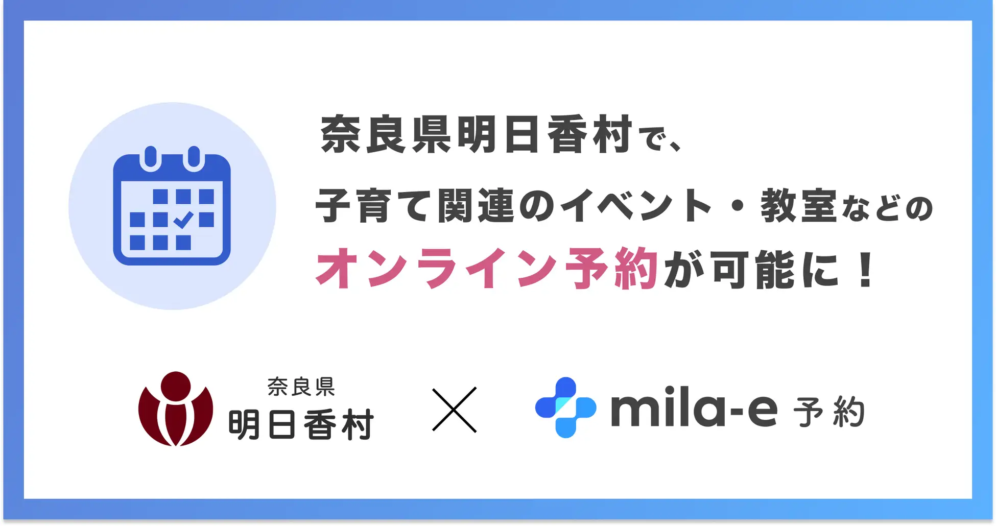 ミラボ、奈良県明日香村で子育て支援のオンライン予約「mila-e 予約」提供開始