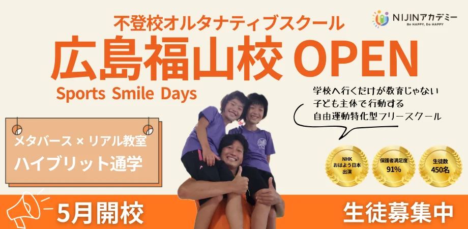 不登校オルタナティブスクール「NIJINアカデミー」、広島福山校を5月13日に開校