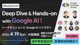 Google Developer Groups Greater Kwansai が主催する同イベントは、Googleの提供する最新のAI技術(Geminiモデル等)を活用し、開発者が「知る」から「創る」へとステップアップすることを目的としている。最前線のエンジニアによるトークセッションや、実際に手を動かして学べるワークショップが行われる。