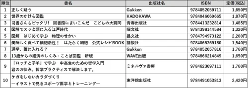 それによると、「セット部門」の第1位は『日本の地理 改訂新版』(Gakken)となった。同書は全8巻で、目を惹く図解と豊富な資料によって、各地方・各県の様子を深く理解できる、調べ学習に最適なシリーズ。