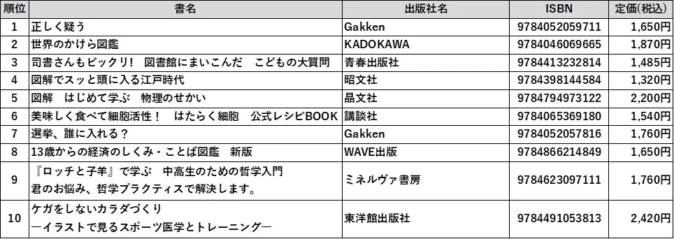 日本出版販売は6日、日販図書館選書センターが、来場した学校図書館関係者によって選書された2025年度の年間選書ランキングを公開した。