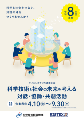科学技術振興機構(JST)社会技術研究開発センター(RISTEX)は、科学技術と社会の未来を考える対話・協働(共創)活動「サイエンスアゴラ連携企画」(2026年度)の企画募集を4月10日から開始した。
