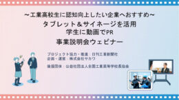 また、サービスの詳細を紹介する無料オンライン説明会も開催する。説明会では、工業高校生の進路選択の最新動向、企業の魅力を伝える新しい手法、学校内での認知獲得の仕組みなどについて説明する。