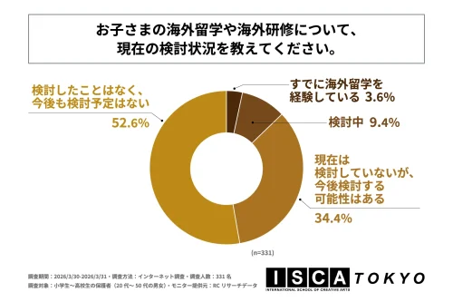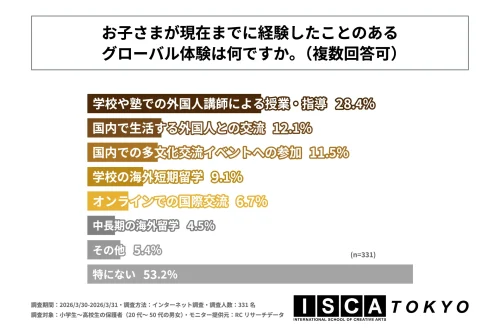 芙蓉エデュケーションズが運営する「ISCA TOKYO」は16日、「子どものグローバル体験機会に関する調査」の結果を公表した。