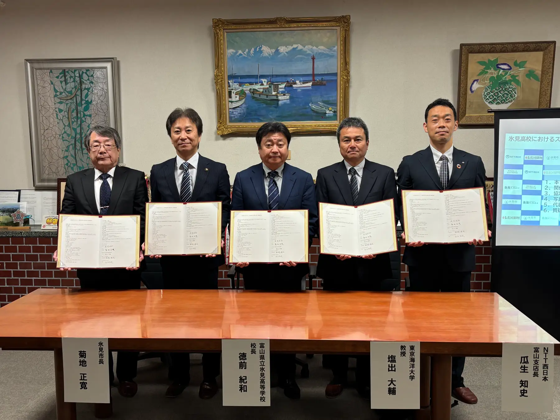富山県立氷見高等学校、氷見市、東京海洋大学、能越ケーブルネット、NTT西日本の5者は、氷見高校海洋科学科の教育充実および地域の海洋産業の高度化を目的として、氷見高校におけるスマート海洋探究学習の推進に関する連携協定を4月16日に締結した。