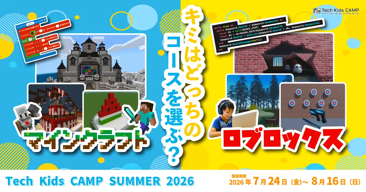 CA Tech Kids(シーエーテックキッズ)は、7月中旬~8月上旬に、小中学生を対象にしたプログラミング体験ワークショップ「Tech Kids CAMP Summer 2026」を開催する。
