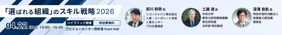 オープンバッジ・ネットワークは、セミナー「『選ばれる組織』のスキル戦略 2026 ~リコージャパン・中央大学に学ぶ、オープンバッジによる『スキル可視化』~」を4月22日に無料開催する。