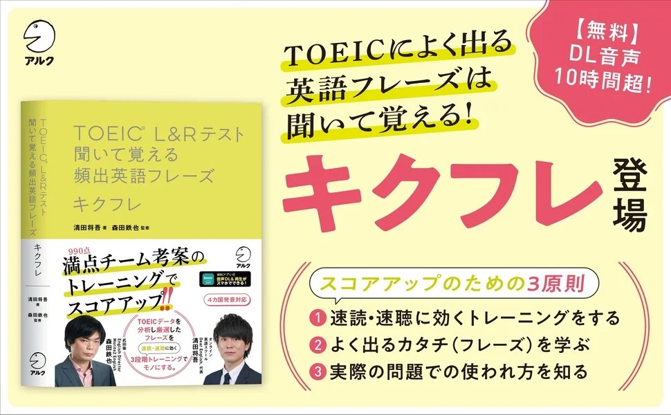 アルクは22日、新刊トレーニングブック「TOEIC L&Rテスト 聞いて覚える頻出英語フレーズ キクフレ」を発売した。