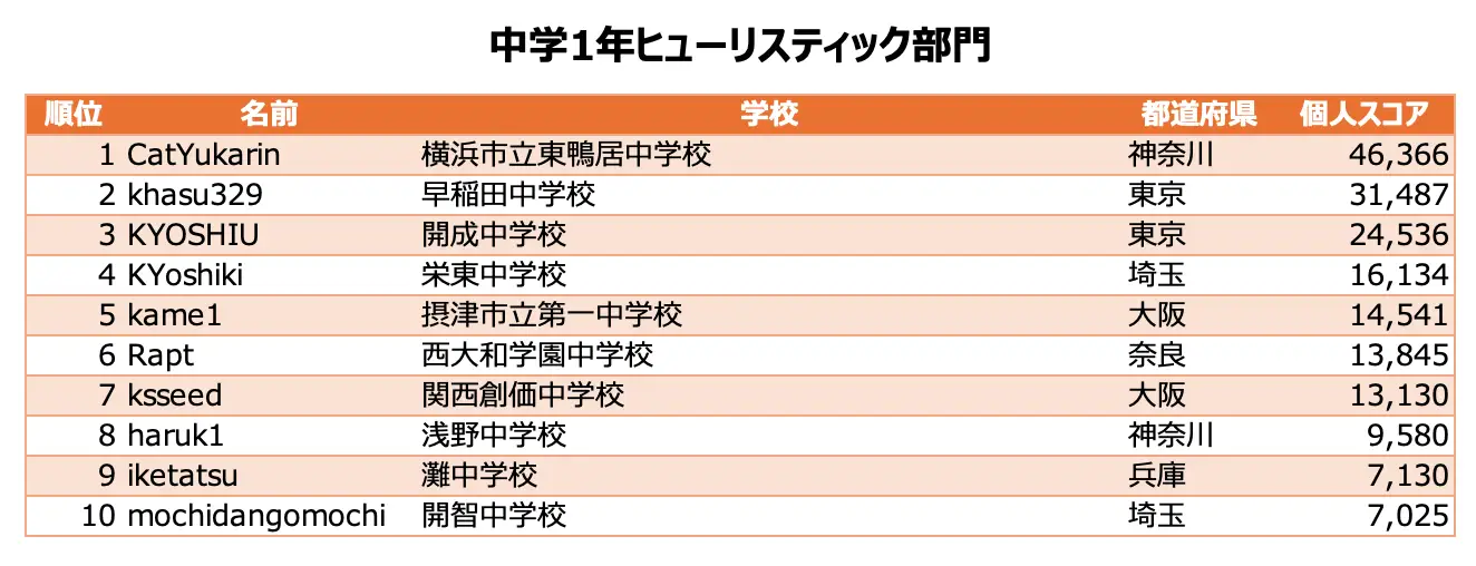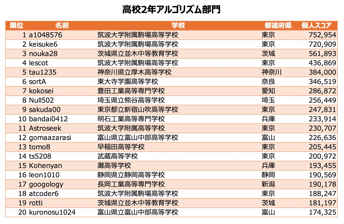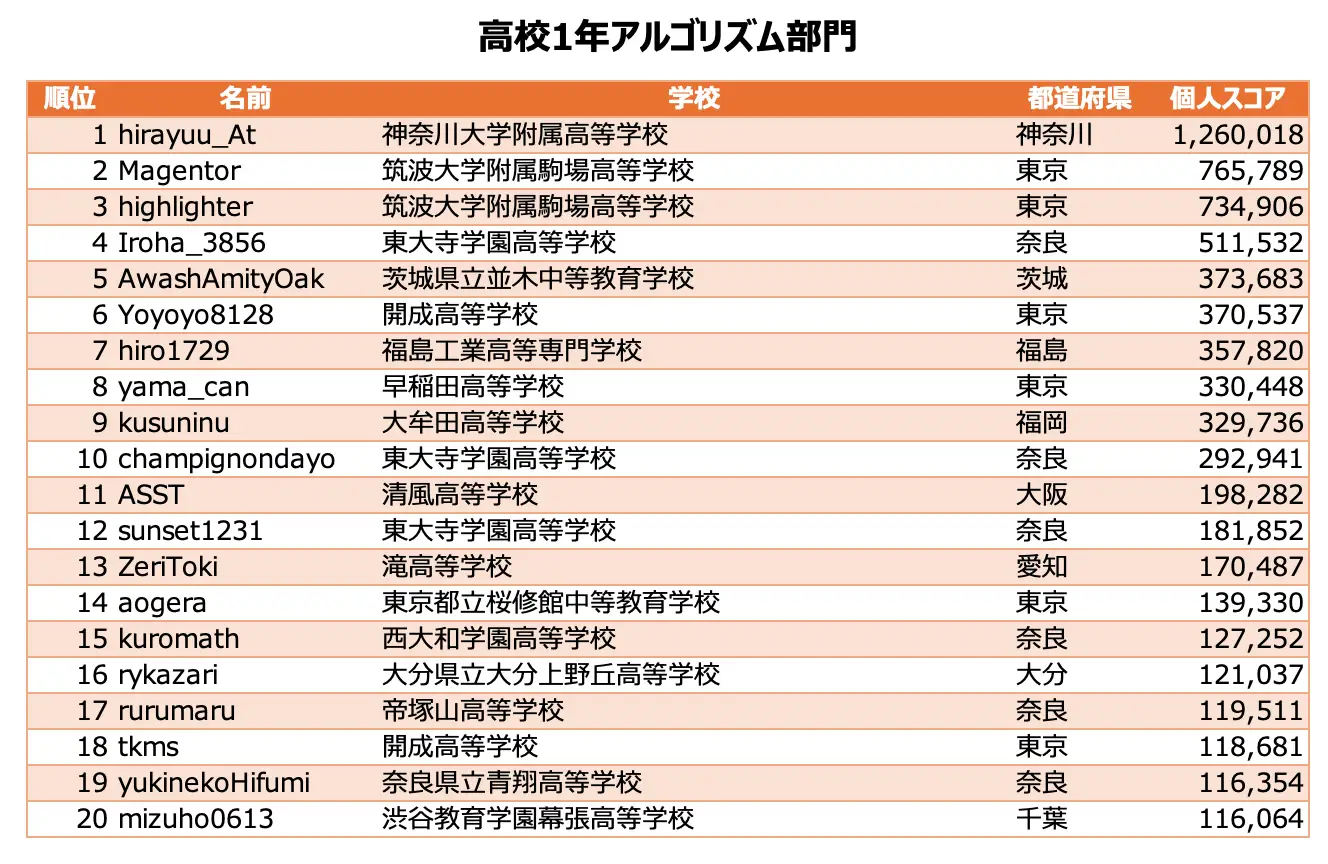 AtCoderは22日、日本在住の中高生向け学校対抗競技プログラミング「AtCoder Junior League 2025 Winter」の入賞校・入賞者を発表した。