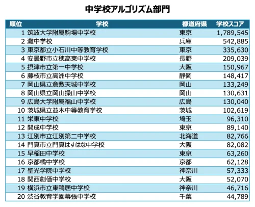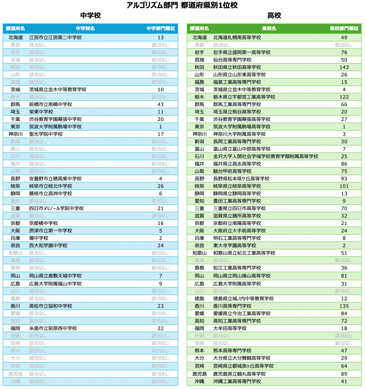 AtCoder Junior LeagueはAtCoderが主催する中高生向けの学校対抗リーグ戦。AtCoder Beginner Contest(ABC)、AtCoder Regular Contest(ARC)、AtCoder Grand Contest(AGC)でのパフォーマンスに応じてスコアを算出し順位を競うアルゴリズム部門と、AtCoder Heuristic Contest(AHC)でのパフォーマンスに応じてスコアを算出し順位を競うヒューリスティック部門がある。