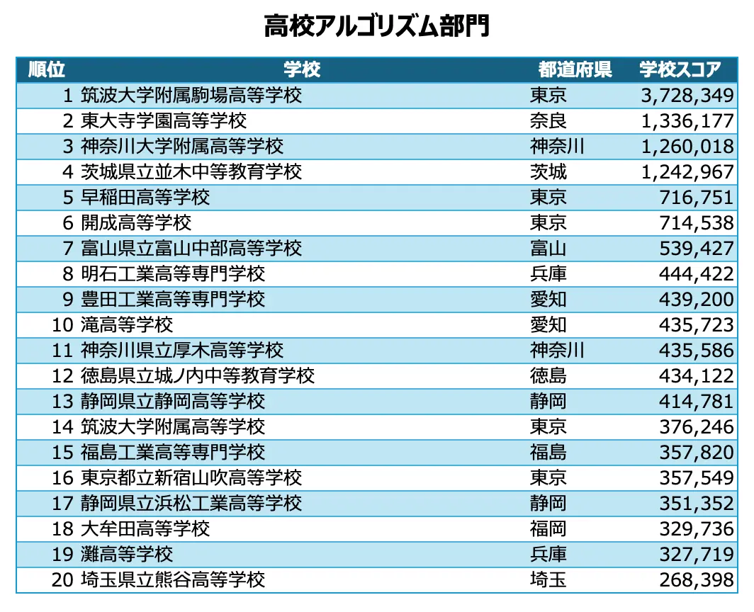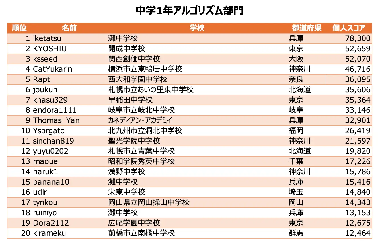 AtCoder、中高生向け学校対抗競技プログラミング「AtCoder Junior League 2025 Winter」入賞校・入賞者を発表