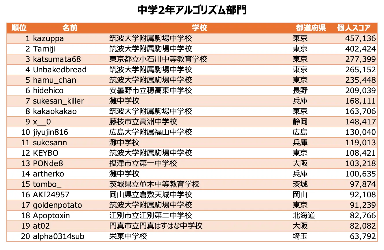 - AtCoder、中高生向け学校対抗競技プログラミング「AtCoder Junior League 2025 Winter」入賞校・入賞者を発表