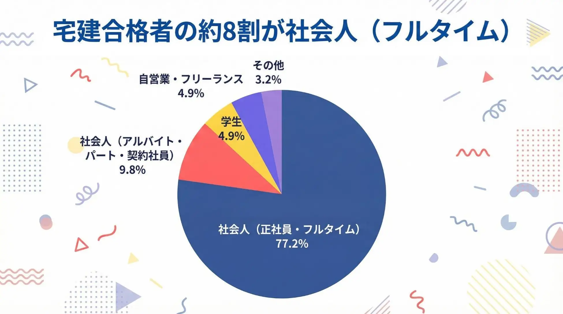 宅建資格が不動産業界以外でも評価される場面が増えていることや、キャリアチェンジを目指して異業種から挑戦する人が多いことがうかがえる。