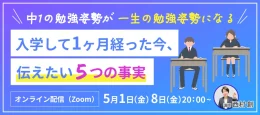メイツが運営する中高一貫校専門個別指導塾WAYSは、この春中高一貫校に入学した新中学1年生の保護者を対象とした無料オンラインセミナー「入学後の親子に伝えたい『5つの事実』と最初の定期テスト攻略法」を5月1日と8日に開催する。