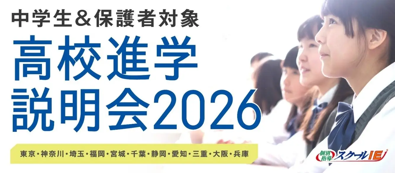 やる気スイッチグループが運営する個別指導塾「スクールIE」は、5月16日~6月6日にかけて、中学生とその保護者を対象にした「高校進学説明会2026」をオンラインで無料開催する。