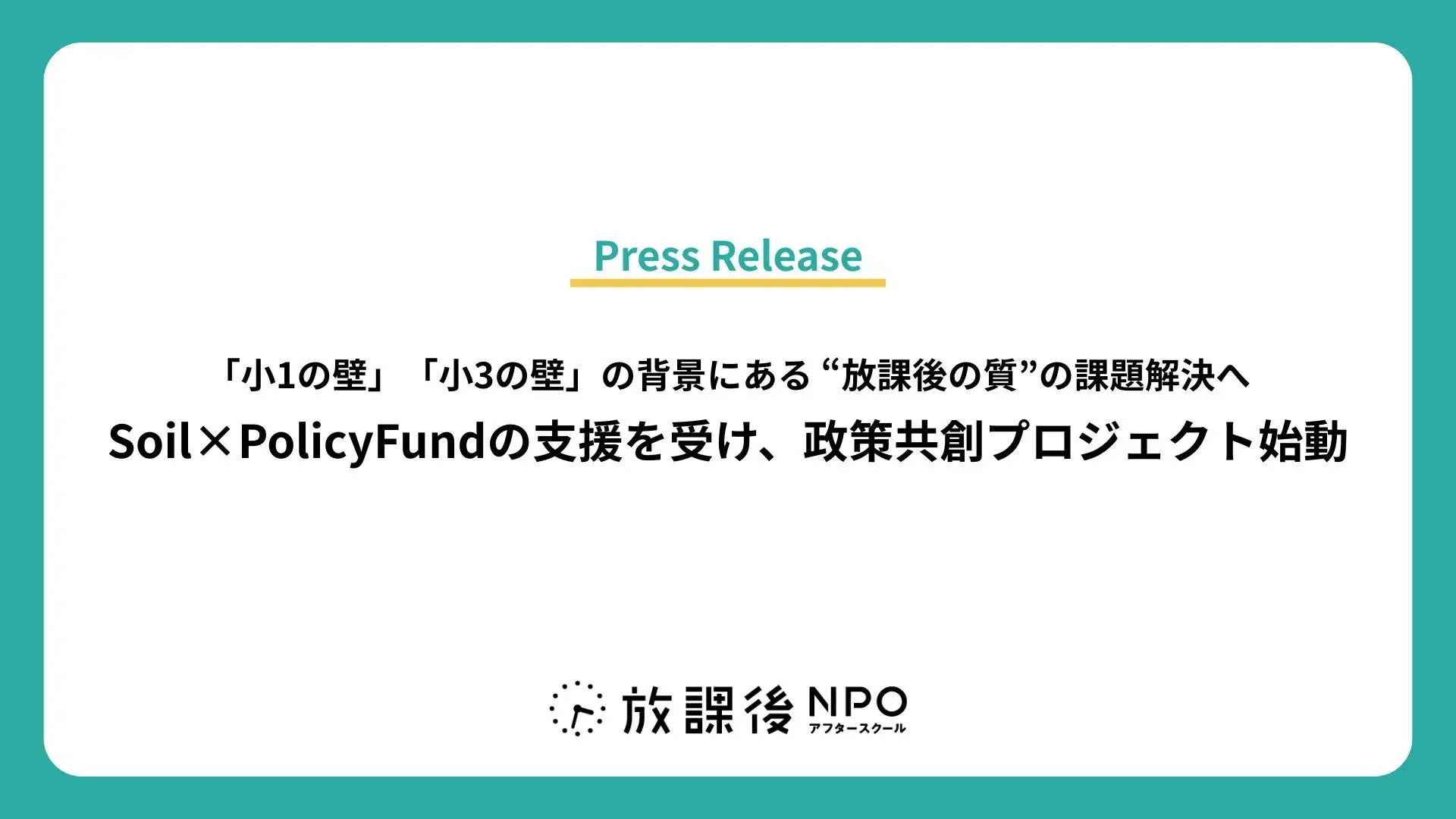 放課後NPOアフタースクールは、SoilとPoliPoliの共同企画「Soil×PolicyFund」の支援を受け、今月から放課後の質向上に向けた政策提言プロジェクトを始動した。