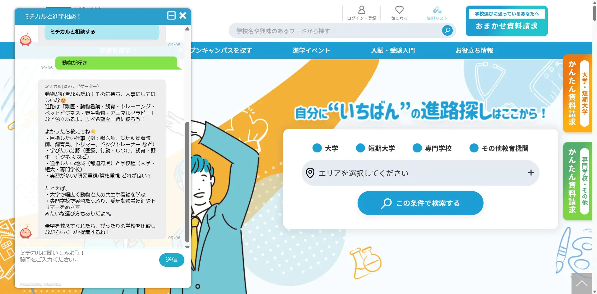 ポータルサイト「さんぽう進学ネット」、新機能「志望校マッチングAI・ミチカル」を搭載