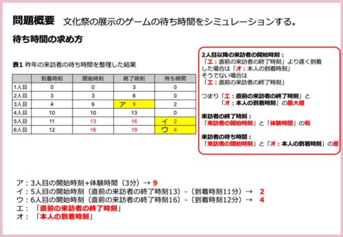 2回目となる今回は、「体験時間を1分から15分まで変化させた時の、最長待ち時間のシミュレーション」という出題の核心である「問3」に挑戦します。