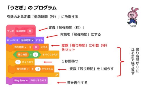 前回、「うさぎ」のスプライトで作成した「タイマー」の機能を振り返ります。