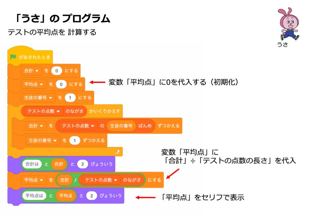 ユーバーの「Scratchで小・中学校のプログラミング」Vol.18 <スクラッチで平均点を計算する>