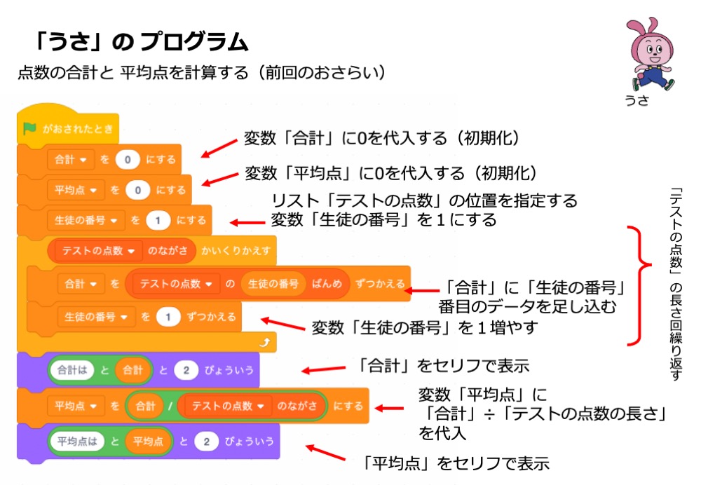 リスト「テストの点数」の合計と平均点を計算する(前回のおさらい)