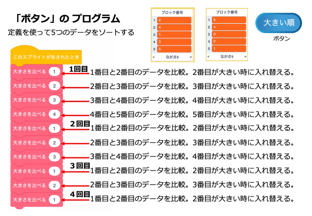 ユーバーの「Scratchで小・中学校のプログラミング」Vol.21 <スクラッチで大きい順に並べかえ②(繰り返しで自動化)>
