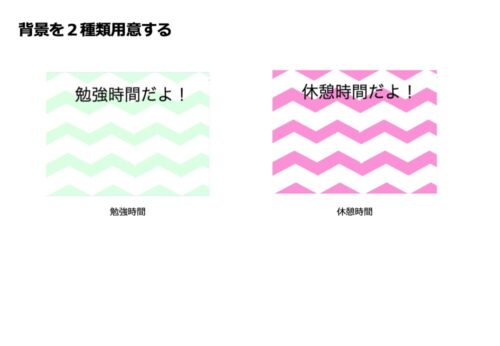 時間が経過した時に背景を変えるためにステージに2種類(勉強時間、休憩時間)の背景を用意しておきます。