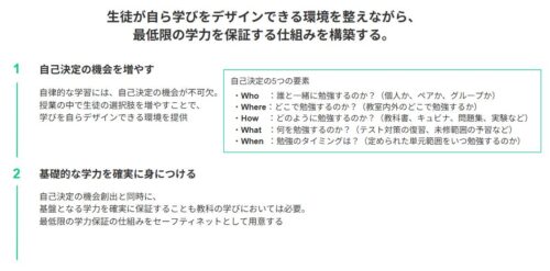 【実証の枠組み】①生徒自ら学びをデザイン ②学力保証の2本柱で授業モデルを構築・実践