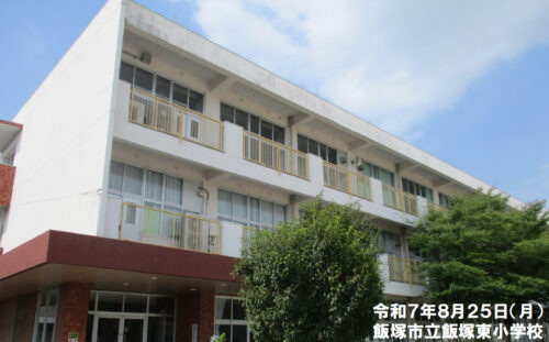 飯塚東小学校は児童数412名、学級数19学級、教職員数39名の学校です。