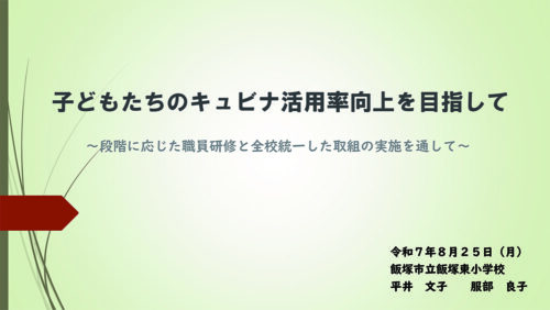 2025年8月25日にCOMPASSが開催したオンラインイベント「先生に学ぶ!キュビナ活用実践セミナー」から、飯塚市立飯塚東小学校の事例報告「『キュビナ』活用率向上を目指して、段階に応じた職員研修と全校統一した取り組みの実施」を紹介する。