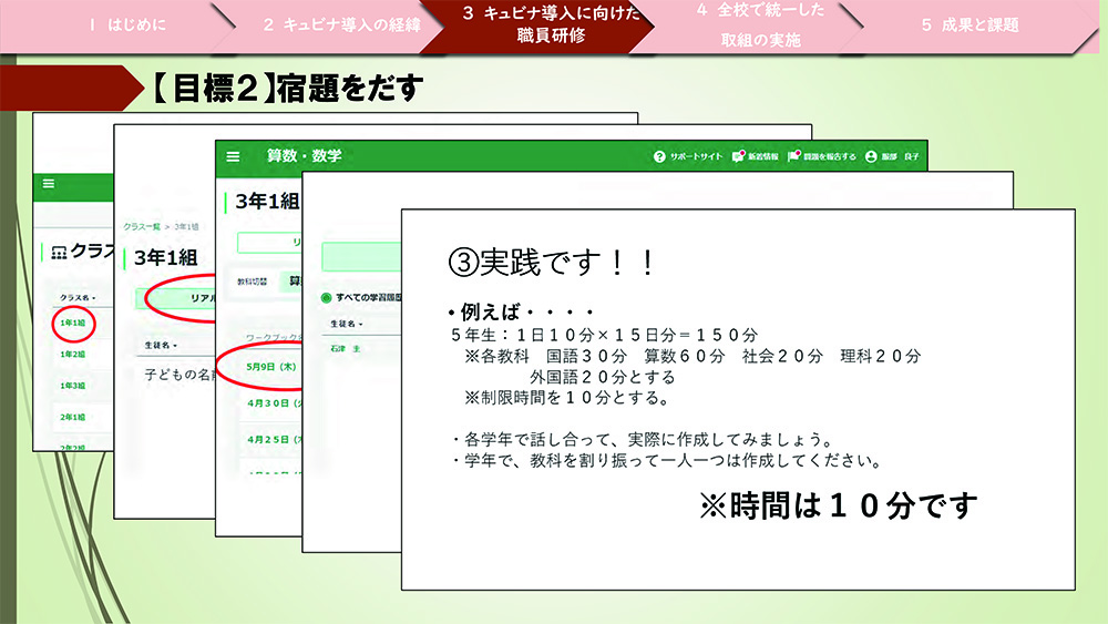 「キュビナ」の活用にあたっては全校で統一した取り組みを行いました。