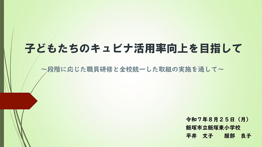発表は、飯塚市立飯塚東小学校の平井文子教諭と服部良子教諭がおこなった。