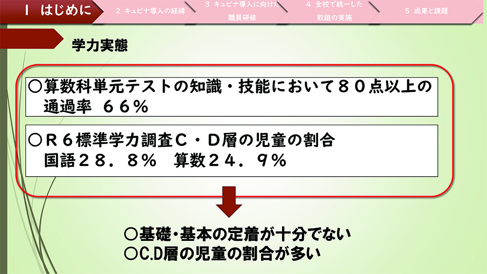 飯塚東小学校の学力実態と「キュビナ」導入の経緯