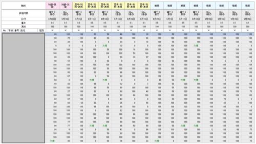 こちらは、キュビナを評価に入れる際の補助簿の一部(編集済み)です。