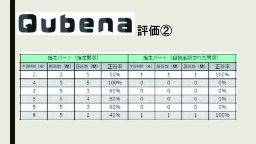 キュビナのAIによる復習機能で誤答に応じて自動出題された問題がある生徒とない生徒がいますので、生徒の間違いなど学習状況を確認して、個に応じた指導に活かしています。