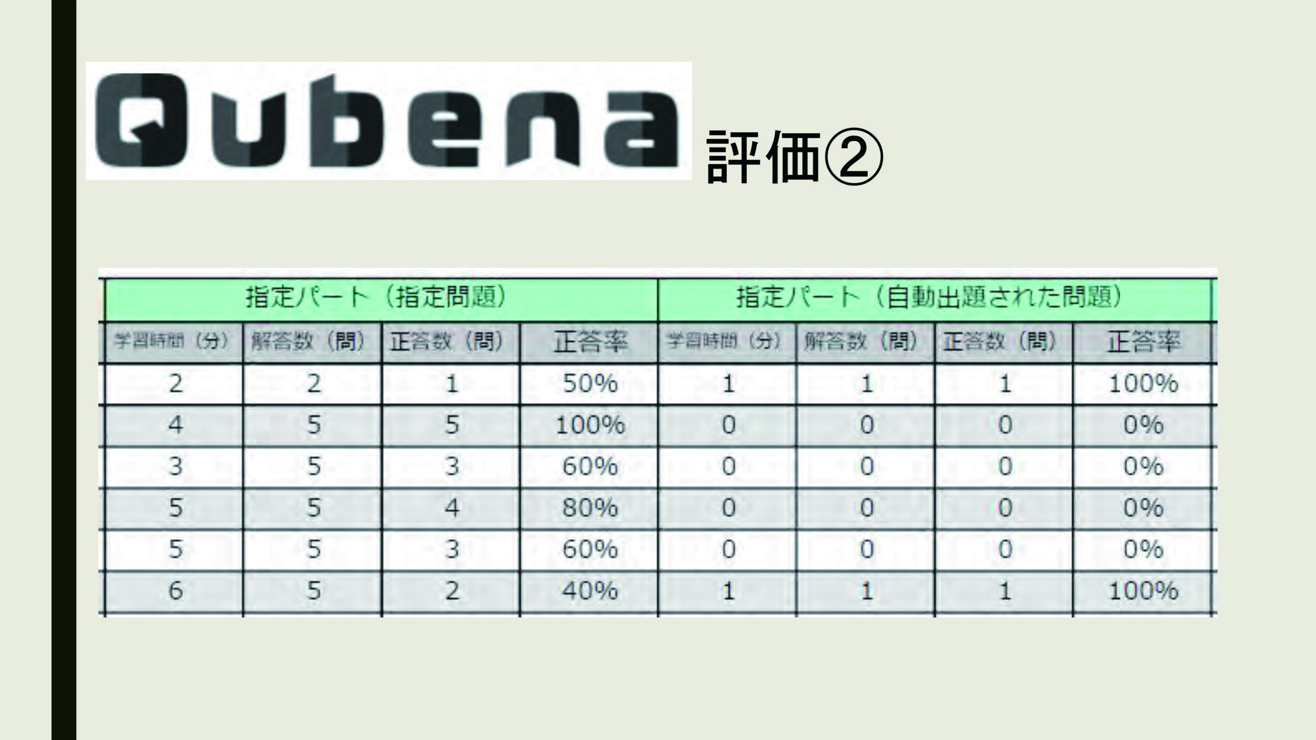 キュビナのAIによる復習機能で誤答に応じて自動出題された問題がある生徒とない生徒がいますので、生徒の間違いなど学習状況を確認して、個に応じた指導に活かしています。