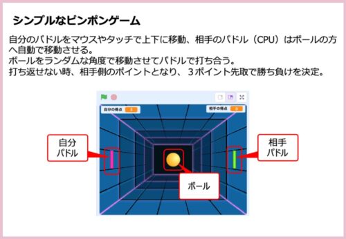 Scratchでシンプルなピンポンゲームを制作します。