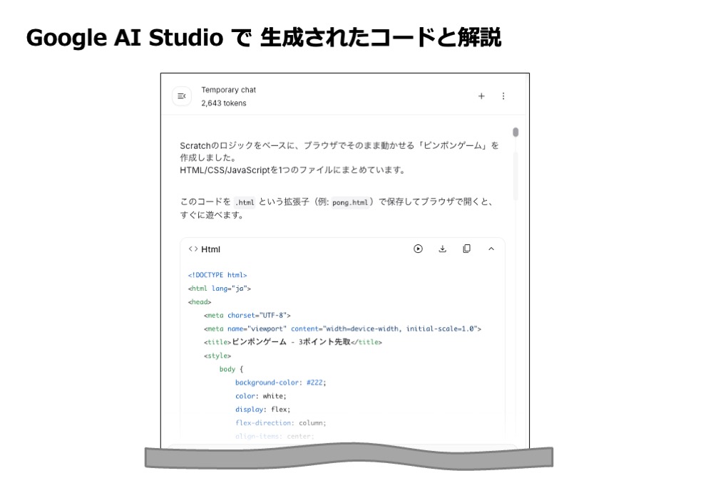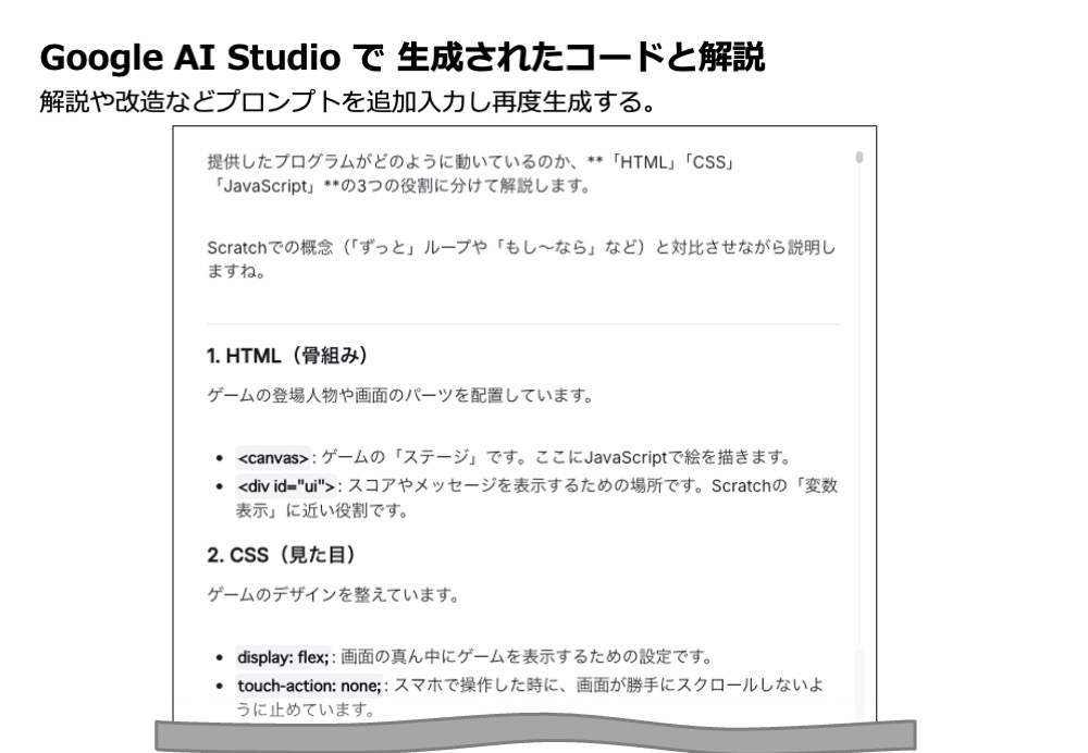 ユーバーの「Scratchで小・中学校のプログラミング」Vol.41 <スクラッチのコードを最新AIで「翻訳」する:Google AI Studio活用編>