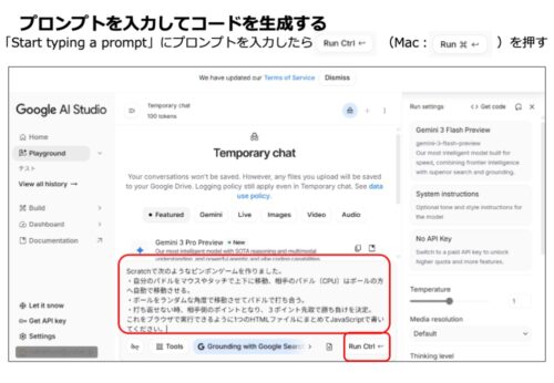 Google AI Studioであっという間にJavaScriptのコードが生成されます。