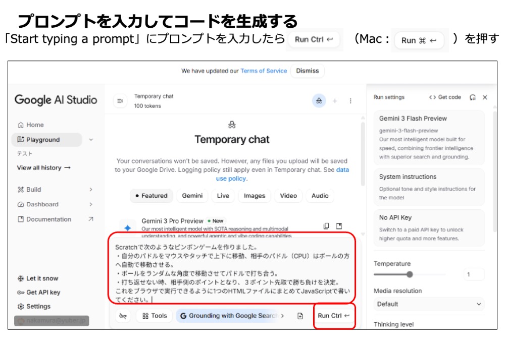 Google AI Studioを使ってみる